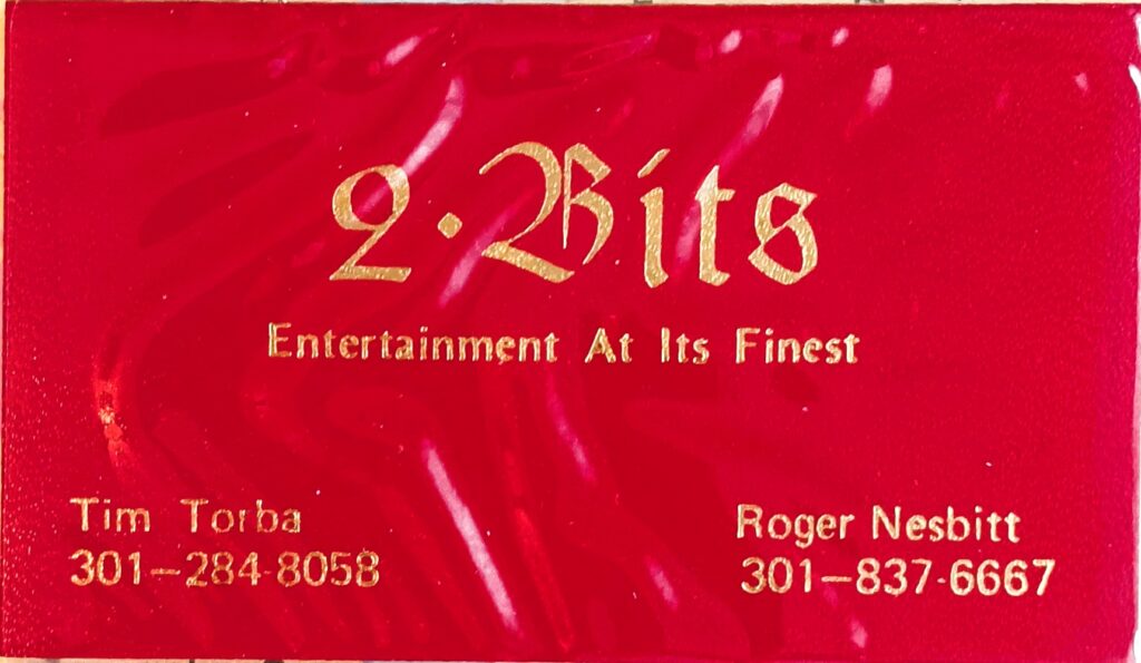 The 2 Bits duo played Annabel’s Pub, Bobby Baker’s Carousel Lounge in Ocean City, Roy’s (Fairfax, VA), Royal Arms (Hyattsville), Alexander’s, Golden Frankford Inn, and the Holiday Inn Circuit…