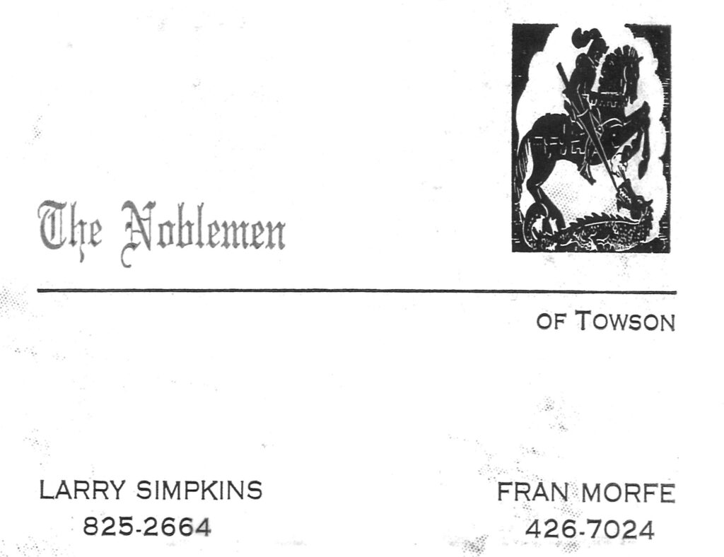 “Wayne recalled the Towson based ‘Noblemen of Soul Band’ covering the soul radio hits of the day. In addition to the members noted by founder Larry Simpkins, Wayne recalled others including himself (keyboards), Bob Gelotte (drums), Rick Davey (guitar), Jeffrey Lees (trumpet), Will Lloyd (trumpet), Tom Pilsch (sax), Jim Pritchard (trombone), Charlene Tragas (vocals), Chip King (bass).”