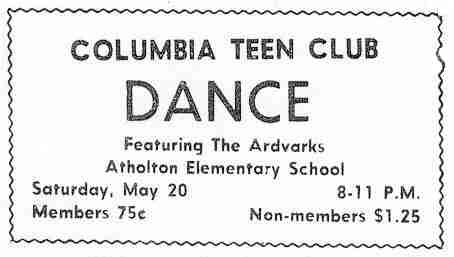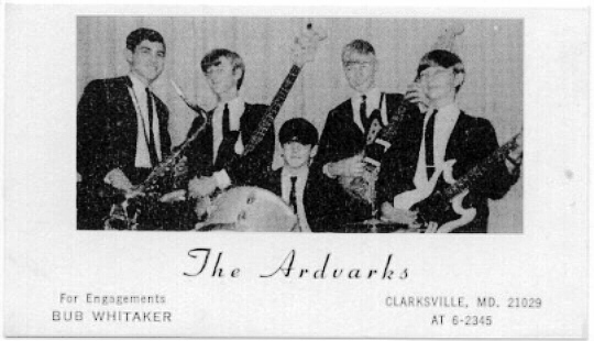 The Ardvarks were a teen band formed by students at Clarksville Jr. High and later attended Atholton High School. The original members were Marc Lane, Gary Goggin, Carl Salas (sax), Charles ‘Bub’ Whitaker, and Greg Hawkes (guitar -see bio). In 1965, they entered the Howard County Amateur Talent Show at Rockland School – winning third place in the competition. They continued as a very popular band at teen centers and school dances throughout Howard County.