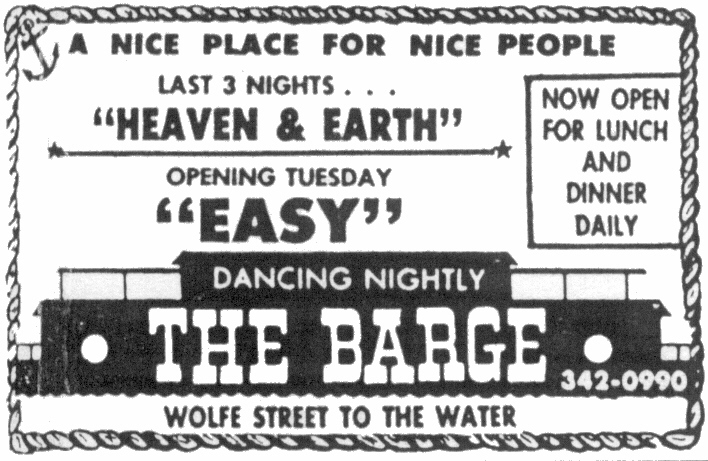 On a barge at 1005 Fells Street "Take Wolf Street to the water" 1976 October 1976 Johnny Walker Show with Monopoly April 1977 Mike March with Climbadonkey and Appaloosa