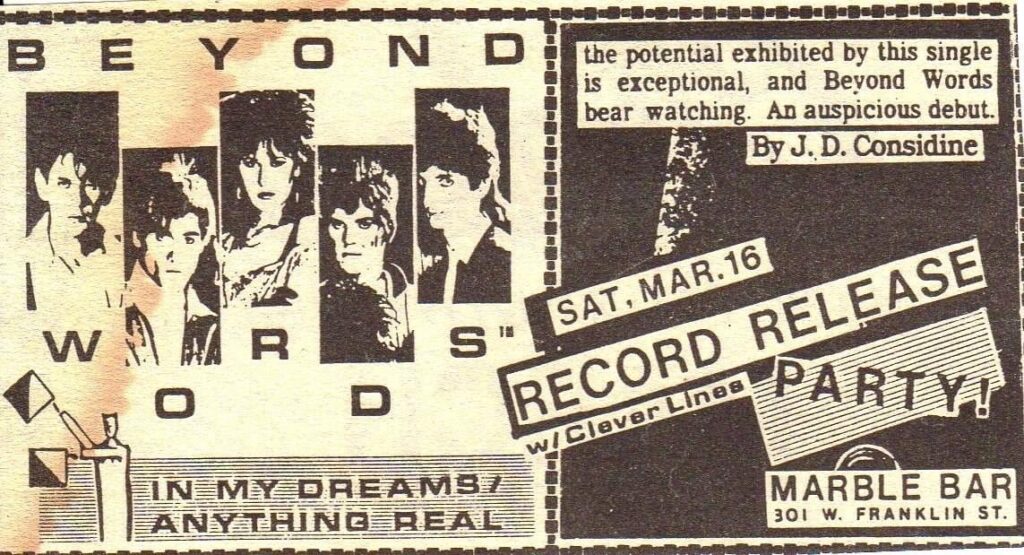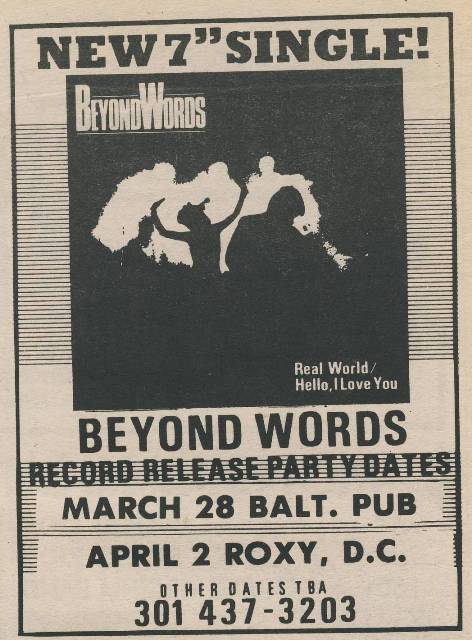 Beyond Words released a self-titled album in 1986. They were voted Best Progressive Rock Band in the 1989 Baltimore magazine reader’s poll.