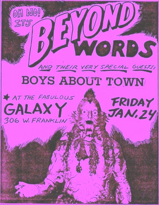 Beyond Words could be seen at the Galaxy Lounge, Exodus Club…