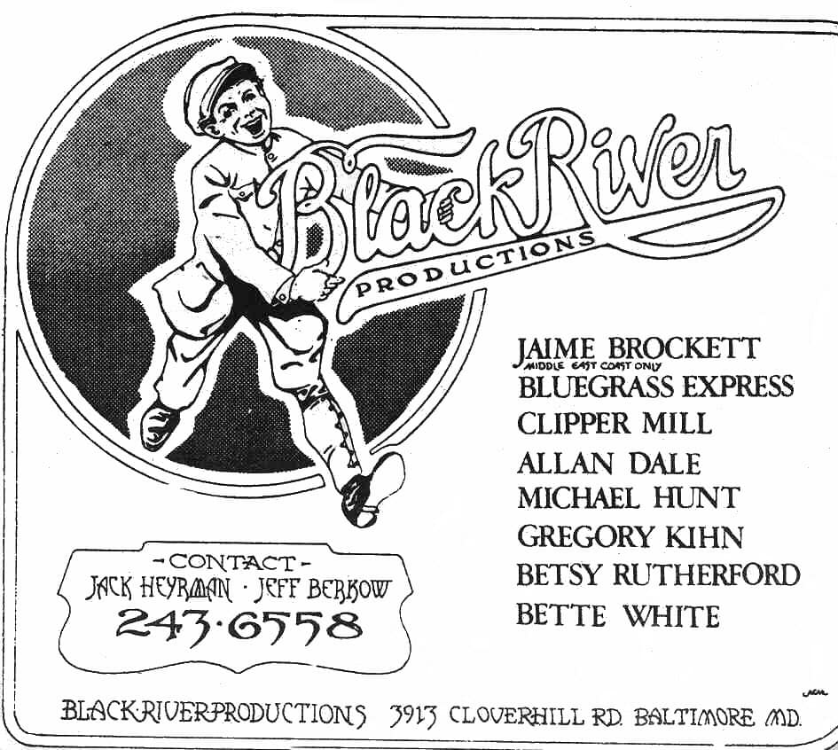 Baltimore’s first booking agency for acoustic performers. Founded in 1968 by Jack Heyrman (see bio). The agency represented artists such as Greg Kihn, Bette White, Warmth, Michael Hunt, The Bluegrass Express, and Clipper Mill. In 1970 the agency was taken over by Peter Heyrman, and continued until 1972.