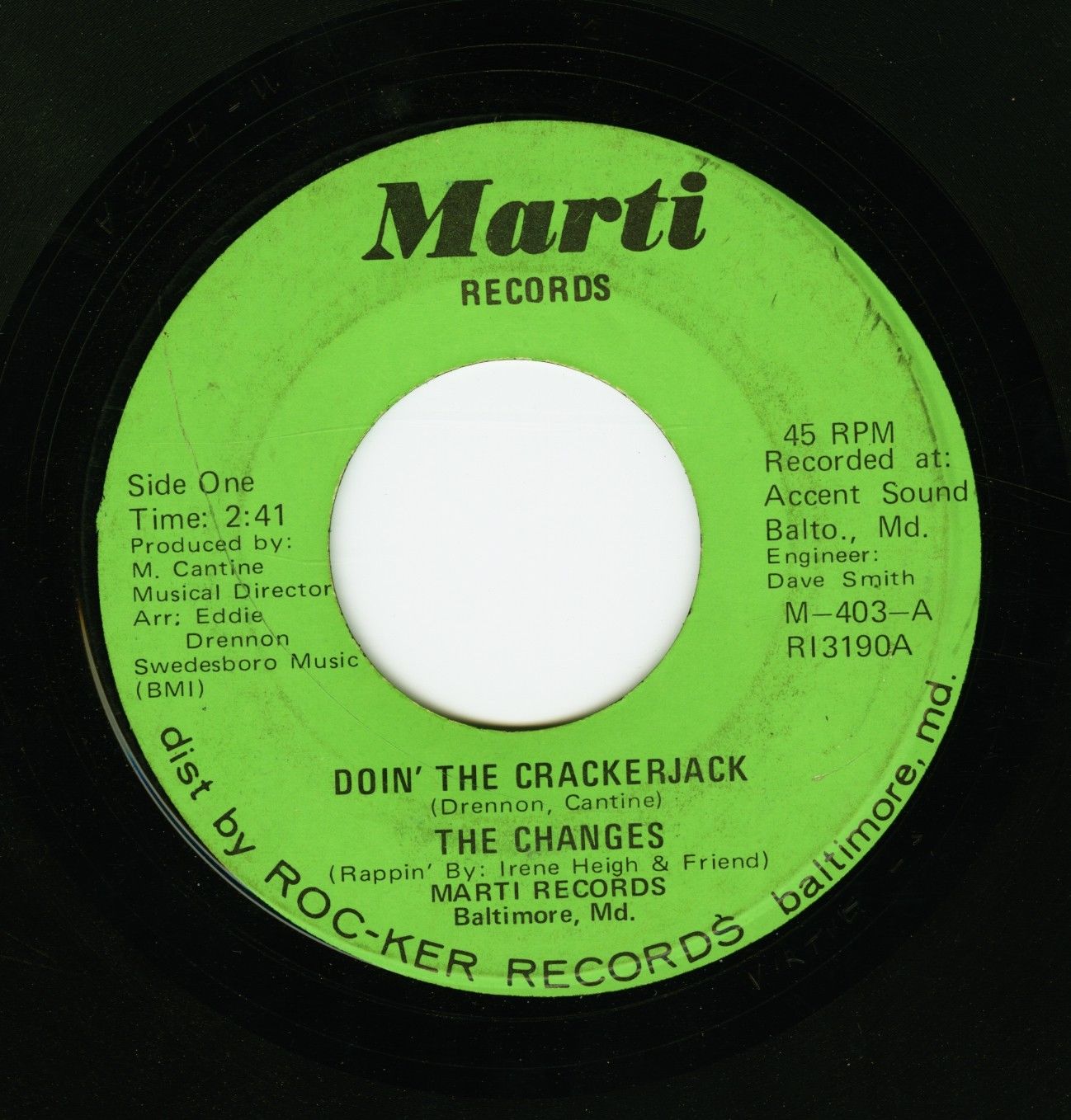 R&B recording artist. They released the single “Doin’ the Crackerjack” b/w “Amen” (Marti 403 ). The songs were written and produced by Eddie Drennon and Marty Cantine, and featured “rappin’ by Irene Heigh & Friend.” The Changes - "Doin' The Crackerjack"