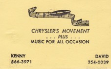 From 1968 through 1972 the vocal group and band was known as the Chrysler’s Movement Plus. There were a few personnel changes during these years. Davis was replaced with Darnell McManus – who was later replaced with David Maurice Crew, ‘Hippie’ was replaced with Mike ‘Droop’ Fielder. In 1969 Murray was replaced with Steve ‘Scrib’ Scribner. Other members included Kenny McEchen, Joe Willis…