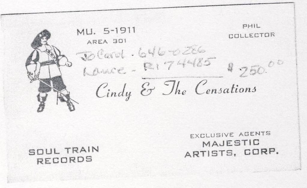 In 1968-69 they were known simply as the Censations – later to be known as the New Censations. Hunt recorded a single on Bay Sound (see his bio) and continued to sing with the New Censations. Kestle went on to play for Bob Brady’s Con Chords, Coyote… Jones later played for the Sentries, Heavy Duty… Zuwalick continued performing in the ‘00s with the Esquires. Cindy continued to sing and play keyboards for the New Censations.