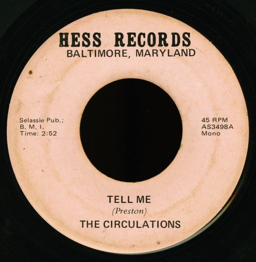 R&B group originally known as the Soul Circulations. Member Aaron heard the El Domingos vocal quartet and was very impressed. He brought the group to their practice session in a hall on Cecil Avenue for manager Eugene Murphy to hear. The groups hit it off and ultimately combined to become the Circulations. Early vocalist Wallace was with group briefly after the new vocal quartet joined. Vocalists were Frankie McIntosh, Donell Johnson, Gary Sykes, and Larry Merrill who was later replaced with George Barton (ex-Mellow Tones). The band consisted of Roy Evans (lead guitar), Sam Evans (bass), Douglas (organ), and Bronco (drums).