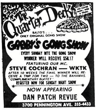 On Sunday nights he led a Gong Show at The Quarter Deck night club.