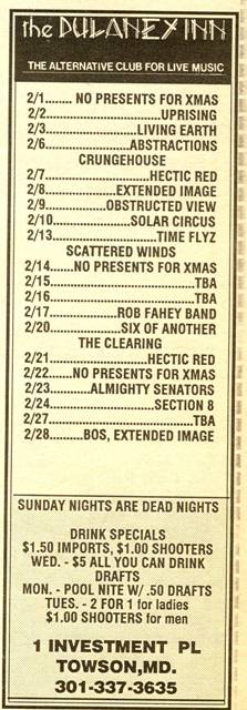 A rough chronology Dulaney Inn ('75-80), Backstreets Cafe ('86), Dulaney Inn ('88+)... 1970 1977 1979 1990