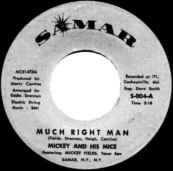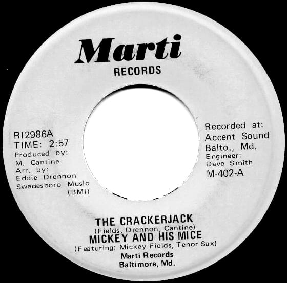 In the ‘60s and ‘70s Mickey & his Mice released some quality R&B records on the Marti label. “Crackerjack” received steady local airplay in the spring and early summer of 1970. The mid-’70s saw Mickey performing as house band at the Kimberly Lounge on Holabird Avenue. The Mickey Fields Quintet also played jazz regularly at O’Henry’s Tavern on East Centre Street and became a fixture at the Sportsmen’s Lounge. Although the members fluctuated throughout the years, they played on and off together in many incarnations of the group. A mid-‘70s all-star lineup included Mickey (sax), with Shirley (vocals), Jimmy Wells (vibes), Donald Bailey (bass), and Hugh Walker (drums). Vocalist Debbie Jacobs sang with the group in the mid-‘70s. In April 1978 Mickey and his group consisting of Johnny Polite (drums), and Dennis Fisher (organ ex-Chaumonts) performed a benefit concert for Jimmy Johnsun at the Sportsmen’s Lounge along with other local groups. Fields also led a trio that included Marshall Booze (guitar), and Ralph Fisher (drums)…