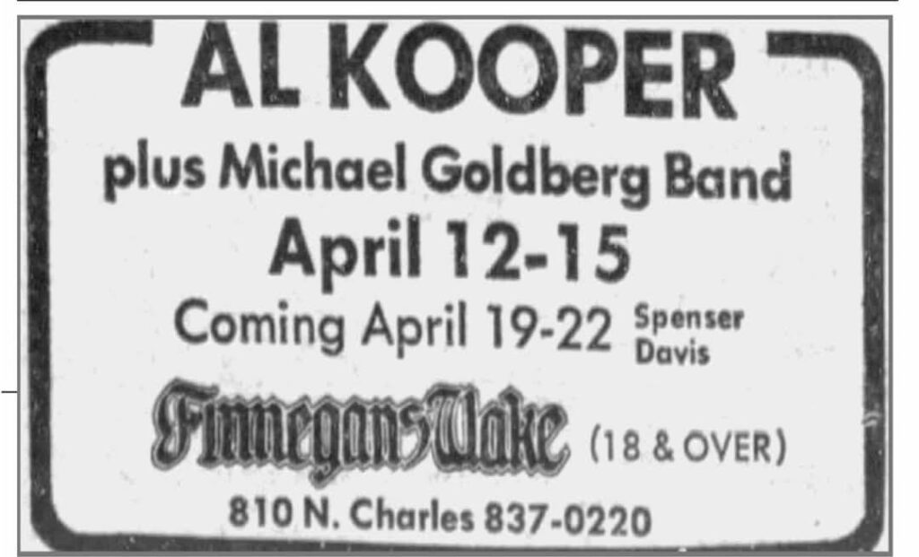 In addition to the Classroom gigs, they made appearances at the Bluesette and a special Wyman Park free concert on August 1, 1971 with Ames Oakes, and Momma Max. Locally the group also played at the Rock Theater, and continued as house band when the Upstairs became known as Finnegan’s Wake.
