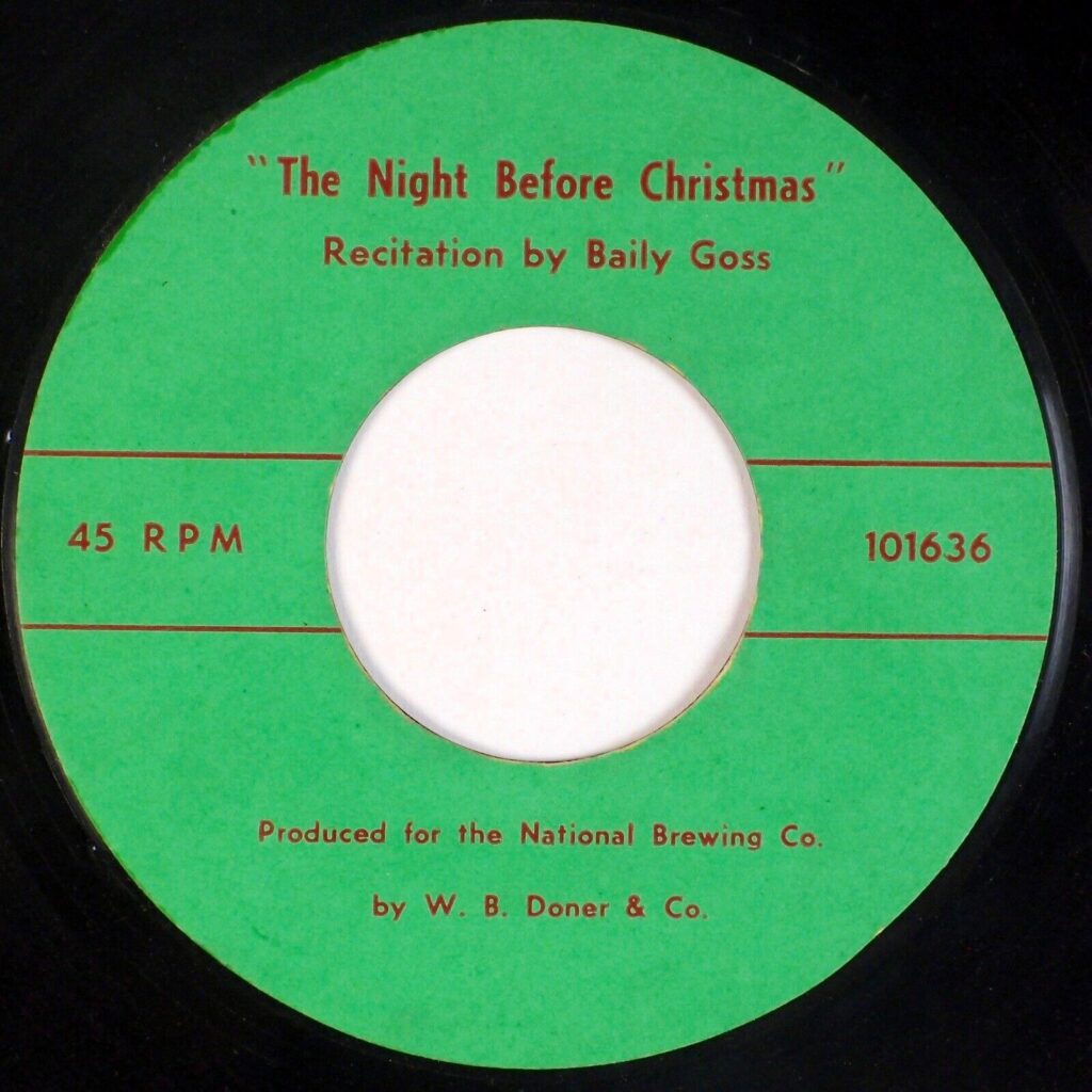 TV show host and announcer for Baltimore Colts football broadcasts WMAR-TV, WBAL-AM radio. Goss was spokesperson for the National Brewing Company and was the voice of commercials for National Beer. He released a record featuring a recitation of “The Night Before Christmas” put out by W. B. Donor & Co. (catalog #101636). Goss died in a car accident in 1962.