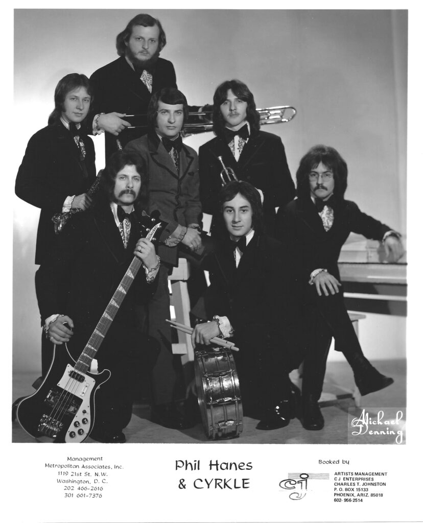 Top 40 show band. History as told by Phil “…After my split with The Inner Cyrkle (late 1972) I formed Phil Hanes & Cyrkle and continued as house band at Ventuno 21 Club in DC.