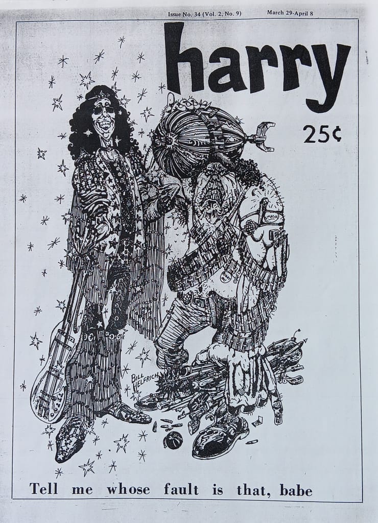 Early contributors included Art Levine, P.J. O’Rourke, Tom D’Antoni, Alan Rose, and Jack Heyrman. HARRY survived many raids, takeovers and other traumatic events to provide alternative and community news at the height of the Viet Nam, hippie, yippie era.