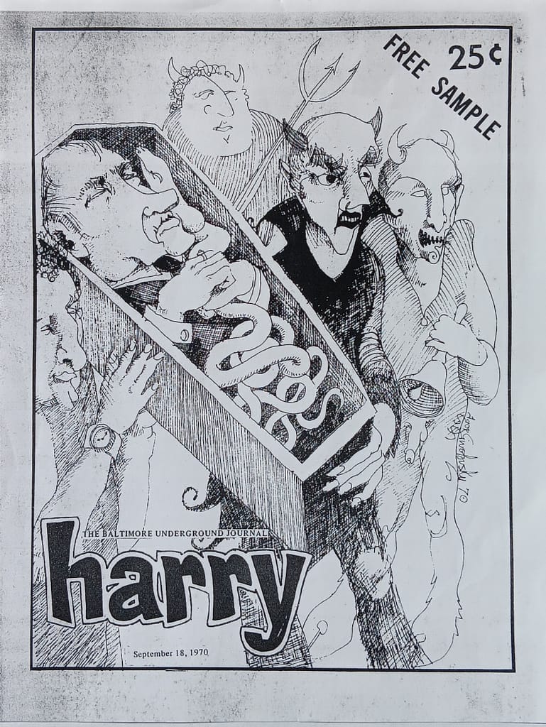 Founded in 1969 by Michael Carliner as Baltimore’s first ‘underground’ newspaper. After a rocky start, when the original staff revolted and walked out on the eve of the first issue’s press run, HARRY went on to become the choice alternative free paper of the Baltimore political and musical communities.
