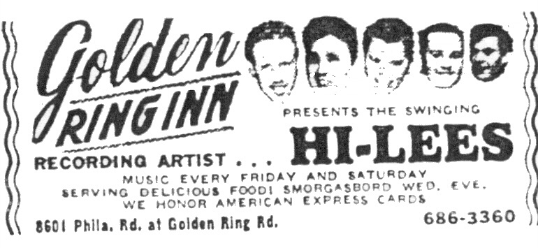 The Hi-Lees played at the Golden Ring Inn almost exclusively as the house band through 1964-65. The group recorded their original songs at Monumental Studios including “Wooden Doll,” “All Nite Party,” “Poly Waddle Doodle,” and “Anna Mae.” The songs were done as demos and weren’t released as singles.