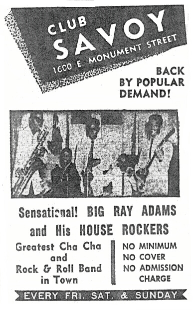 Led by saxophonist Ray Adams. Played stints as house band at the Knotty Pine Club on Linden Avenue, the Castle Bar on Castle Street, the Club Savoy on Monument Street, and the Clover Club on Fayette and Wolfe Streets. Members included Jerome Scruggs (drums ex-Imperals), Melvin Coles (guitar, bass -later with the Cardinals), Joe Allen (piano)…