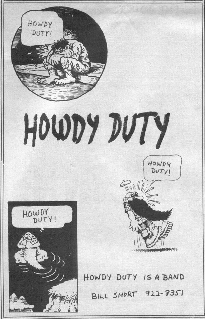 Howdy Duty – 1971 – at the Grey House at UMBC. Courtesy of Ken Wolle