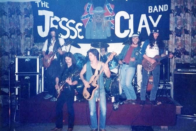 Southern rock band from Elkridge/Ellicott City area. Rick Fonger (guitar ex-Nuthin' Fancy), Dave Clay (guitar) JCB with road crew Tom Shinham aka 'Klink,' and John Shinham aka 'Check' JCB with road crew 'Klink' (lower left) and 'Check' (far right) Jesse Clay Band on double bill with The Road Ducks