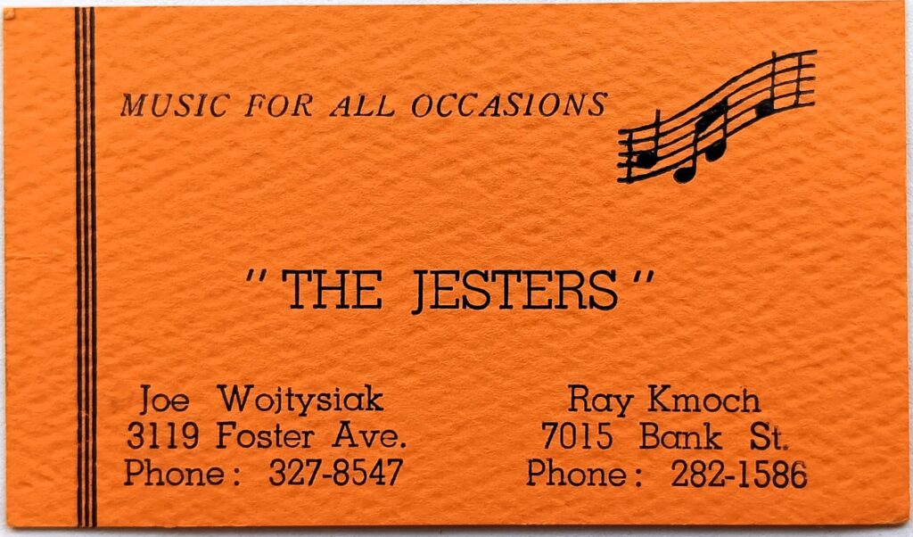 In 1964, five of the original Combonaires; Joe Wojtysiak (accordion), Sal Danna (drums), Tim Nadrowski (sax, clarinet), Ray Kmoch (bass), and John Moscato (sax) re-grouped as the Jesters.