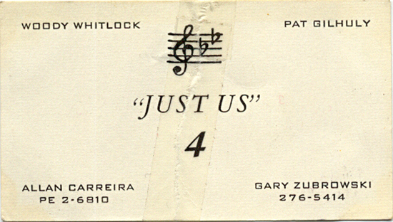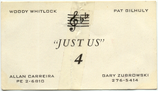 Seen at the Southern Inn. Participated in Southern's Sunday jams along with the Epics, and Freddie Rick. Members included Woody Whitlock, Pat Gilhuly, Allan Carreira, and Gary Zubrowski.