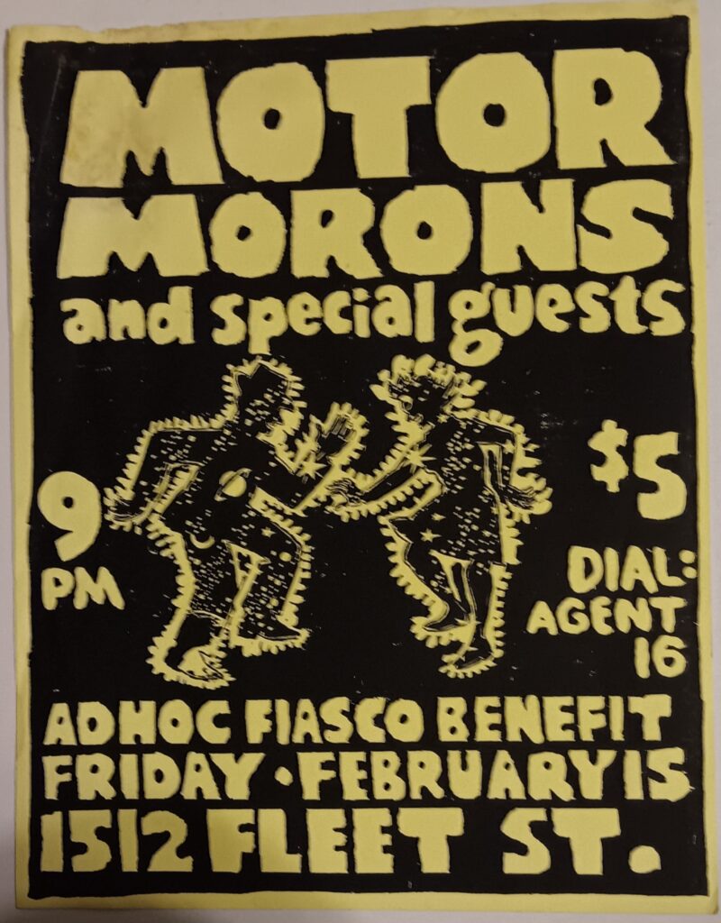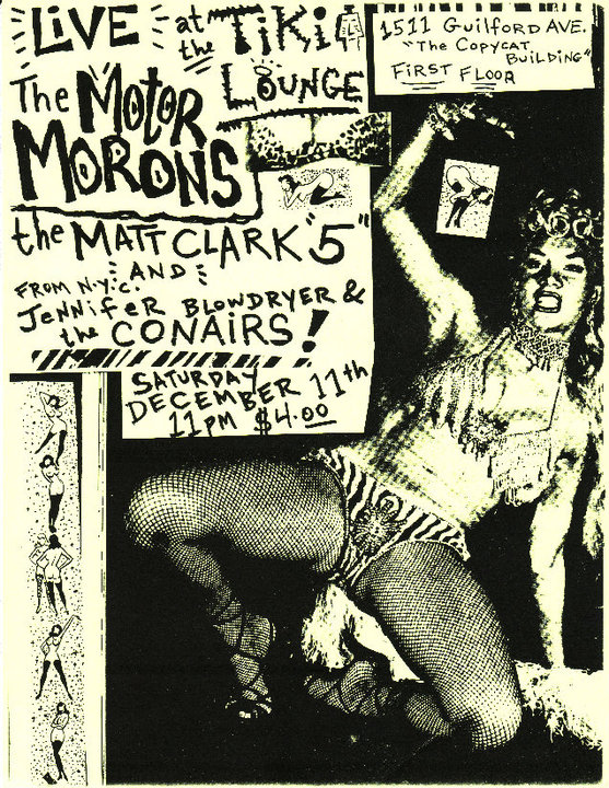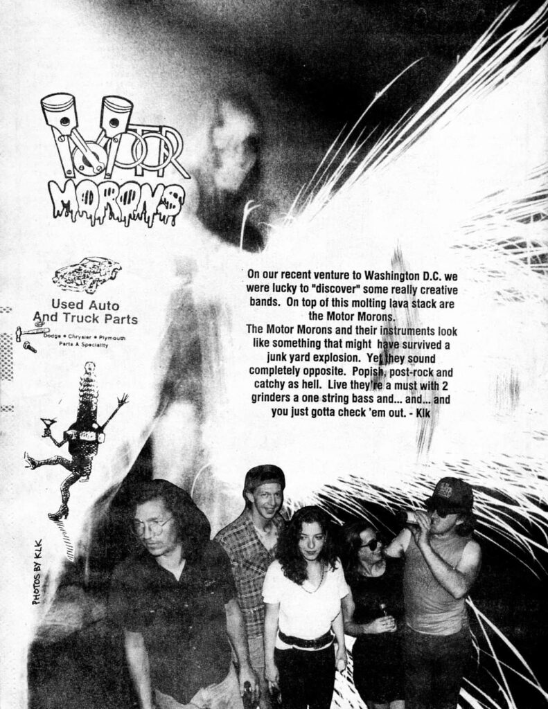 A Baltimore institution since the early ‘80s, the Motor Morons evolved out of (Judie’s) Oral Fixation originally as an acapella group. They became known for their own brand of “garage rock” using auto parts and shop tools as instruments. Led by Sam Fitzsimmons, the band maintained a continuously rotating line-up, which at times included Fred Collins (weed whacker, car parts…), Michelle Hanneburger (vocals, songwriter), Adrian Carciotis (drums), Monroe Hall (handmade electronics played by intentionally shorting them out), Jim Gormley (benchgrinder), Mike Bell (vocals, bass, benchgrinder), Mark Harp (guitar)