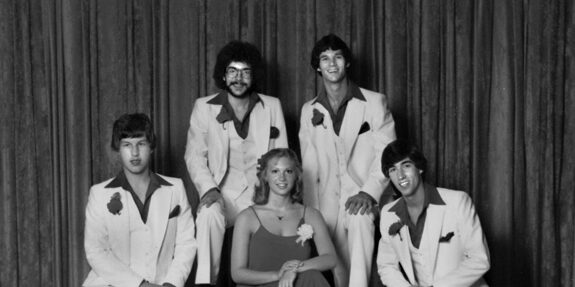 Playing for weddings, CYO dances (Sacred Heart of Glyndon), a few clubs and anyone else that would pay them, Edge of Reality also featured the Elvis Presley stylings of vocalist Eddie Jones. Jones left the band in 1977 to pursue a solo career. Dennis Raymond joined as percussionist and part-time bassist. In 1978 Edge of Reality played to a sold-out crowd at a Franklin High talent show featuring Charles Nolan as Elvis Presley. For one particular gig that year the band renamed itself The Otis Campbell Band (named after the town drunk on The Andy Griffith Show). 1978 also saw the addition of singer and keyboardist Pam Wolfe. Dennis’ funky bass work and Pam’s voice allowed the band to play a wider range of Top-40 and disco.