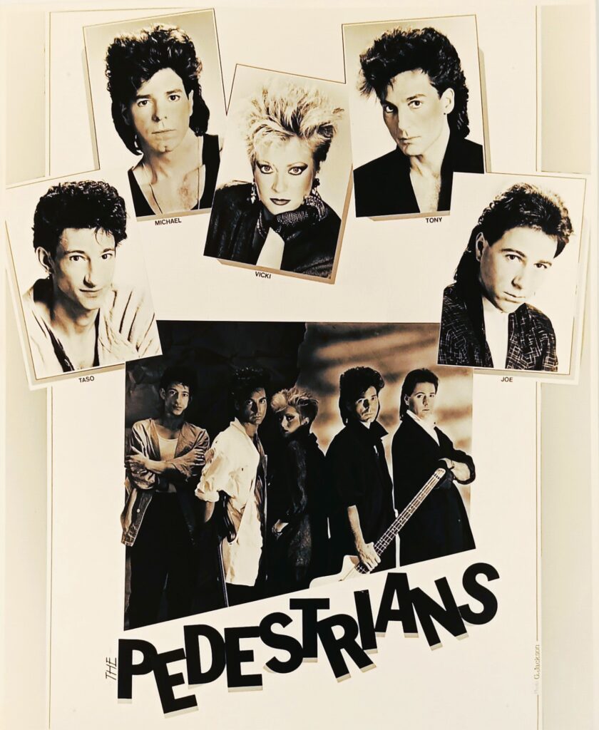 The Pedestrians rock band featured Viki Childs (vocals), Michael Sciuto (bass ex-Ravins, Exit), Tony Sciuto (guitar, vocals ex-Ravins, Meat, Jake, Tugboat, Sirprize), Joe Ercole (keyboards), and Taso Kotsos (drums ex-Secrets). Other members included Tony Phillips (guitar, vocals ex-Tiffany), Don Jakowski (keyboards, vocals).