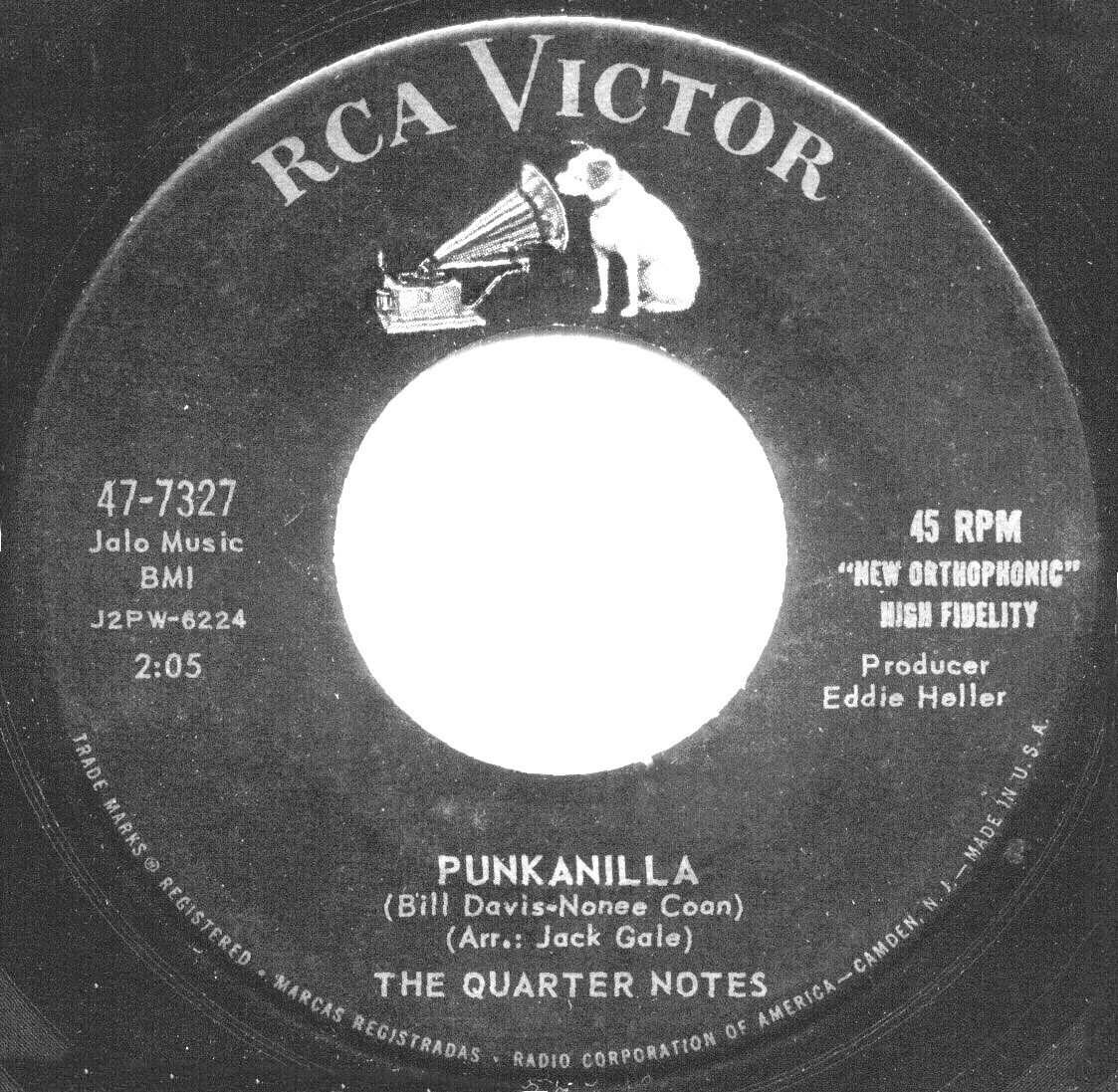 R&B recording artist recording published by Jalo Music and arranged by DJ Jack Gale of radio station W-I-T-H. 1958 RCA 7327 Punkanilla / The Interview