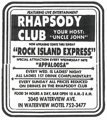 Ads above: Quarter Deck (1976), Rhapsody (1979), Flaming Pit (1979)
