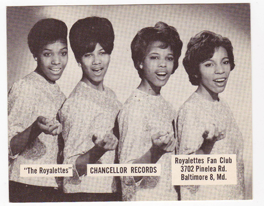 West Baltimore girl group consisting of sisters Sheila Ross (lead singer) and Anita Ross, with their cousin Veronica ‘Roni’ Brown, and friend Terry Jones. Named after the famed Royal Theater on Pennsylvania Avenue where they sang regularly after establishing themselves as a top vocal group.