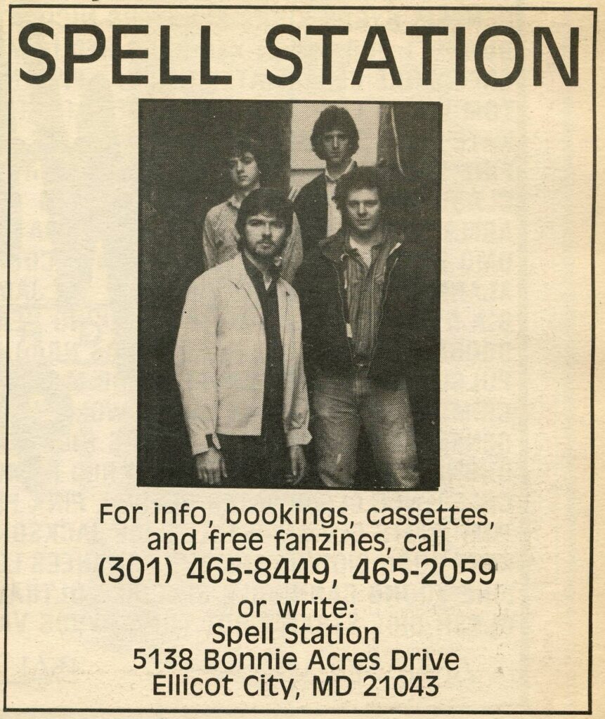 Ellicott City based band. Seen at the Galaxy Lounge… 1986 Sunday Sadness / I’d Never Run Spell Station circa 1986
