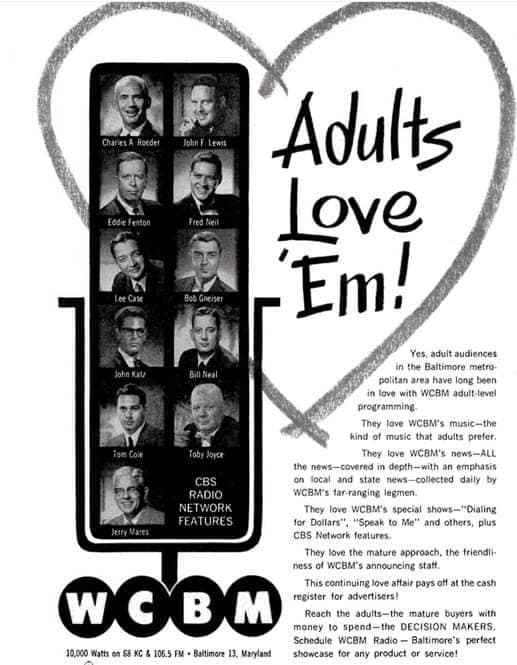 Once a Top-40 station featuring personalities such as Lee Case, Bill Garrett, Ted Bair, Larry Hall, Ted Rado, Joe Knight, Johnny Contino, Larry Walton, Chuck Thompson, Jerry Daniels, Mike March (later at WFBR), Bill Bolling, Dave Lindsay… Newscaster Eddie Fenton (’50s-90s), Sportscaster Charlie Eckman (with WFBR in ‘70s-80s)…