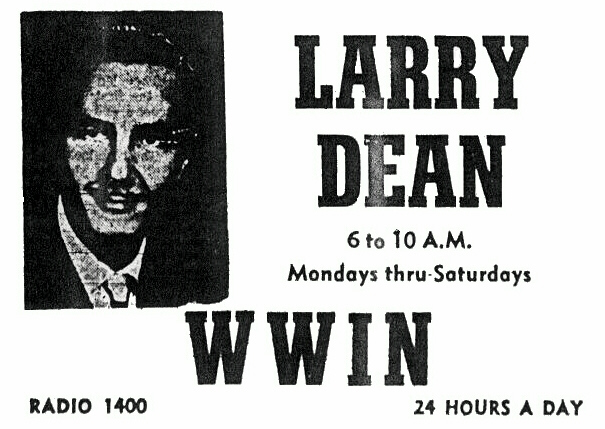 Above: WWIN ads- Kelson Fisher and Larry Dean (1965) , Hot Rod (1969)